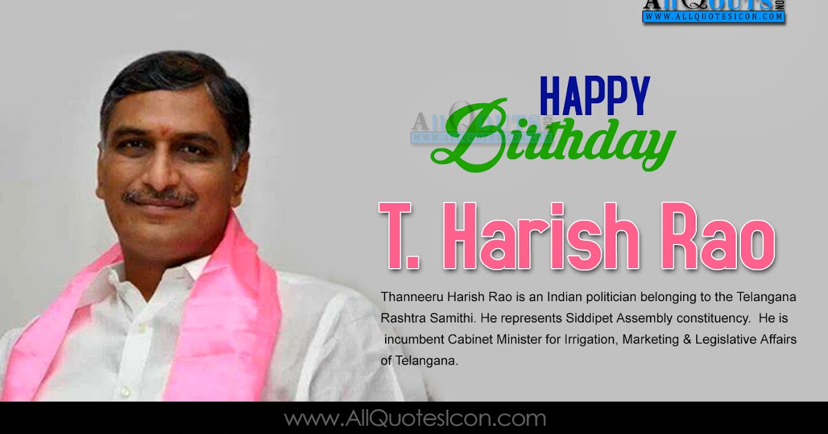 Harish Rao Birthday Wishes Greetings English Quotes Best T Harish Rao Images Www Allquotesicon Com Telugu Quotes Tamil Quotes Hindi Quotes English Quotes   - Download best happy birthday special unique wishes greetings sayings sms messages memes images for political leader in hindi.